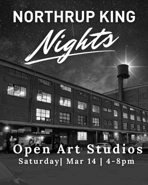 Support local artists and make art central to your visit to the neighborhood that weekend by stopping by the Northrup King Building! Goza Gallery #155 Friday 5–10pm Saturday 12–8pm Sunday 12–5pm