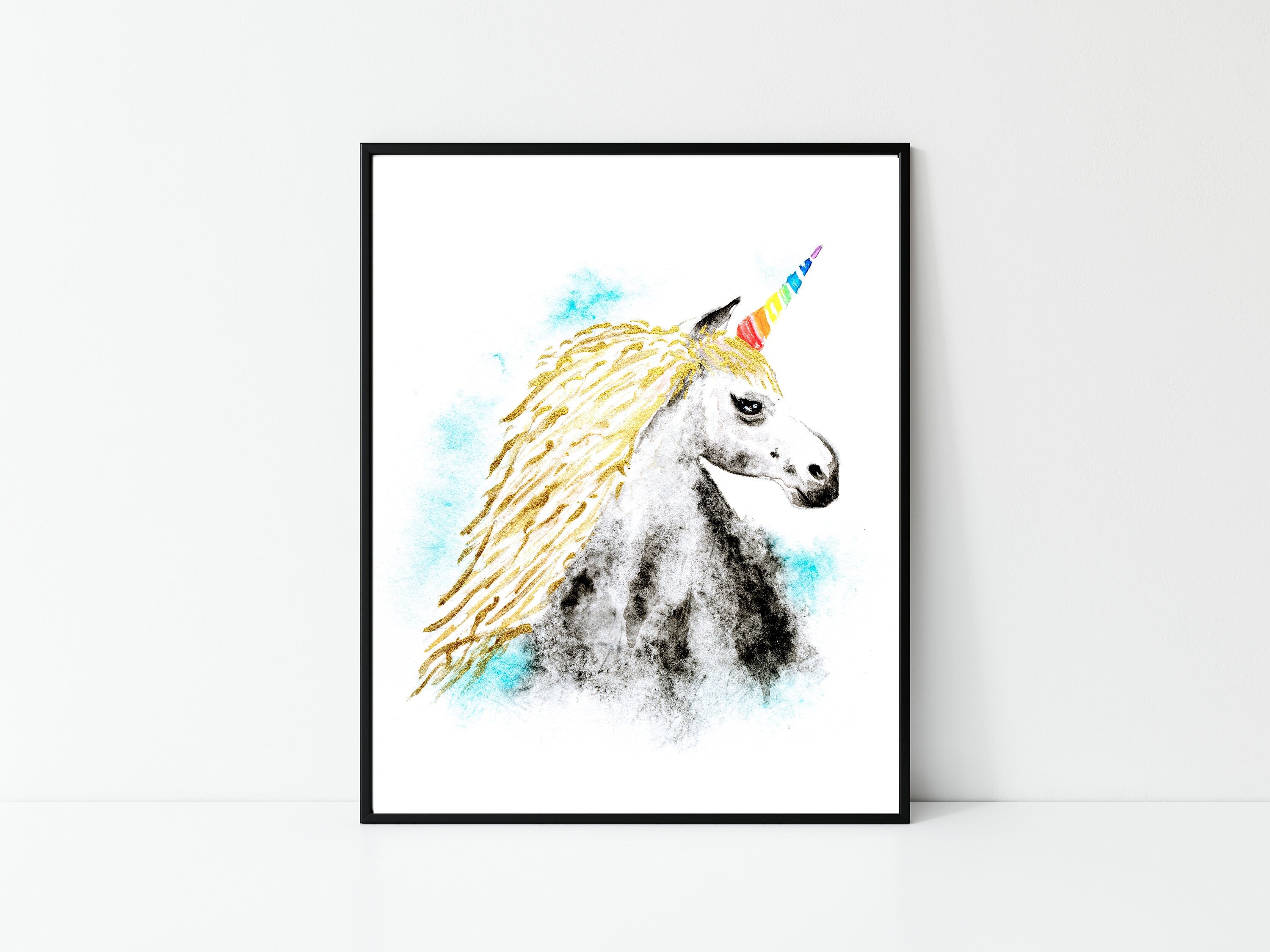 A watercolor unicorn is a unique and playful work of art that depicts a unicorn character. The painting was created using watercolor paint on high-quality paper, which gives it a soft and delicate appearance. The painting features a blend of neutral colors, with a pop of rainbow giving it a fun and whimsical feel. The unicorn character is illustrated in a cartoonish style, with a playful expression and exaggerated features. This type of painting is perfect for those who appreciate humor, quirkiness, and cuteness.