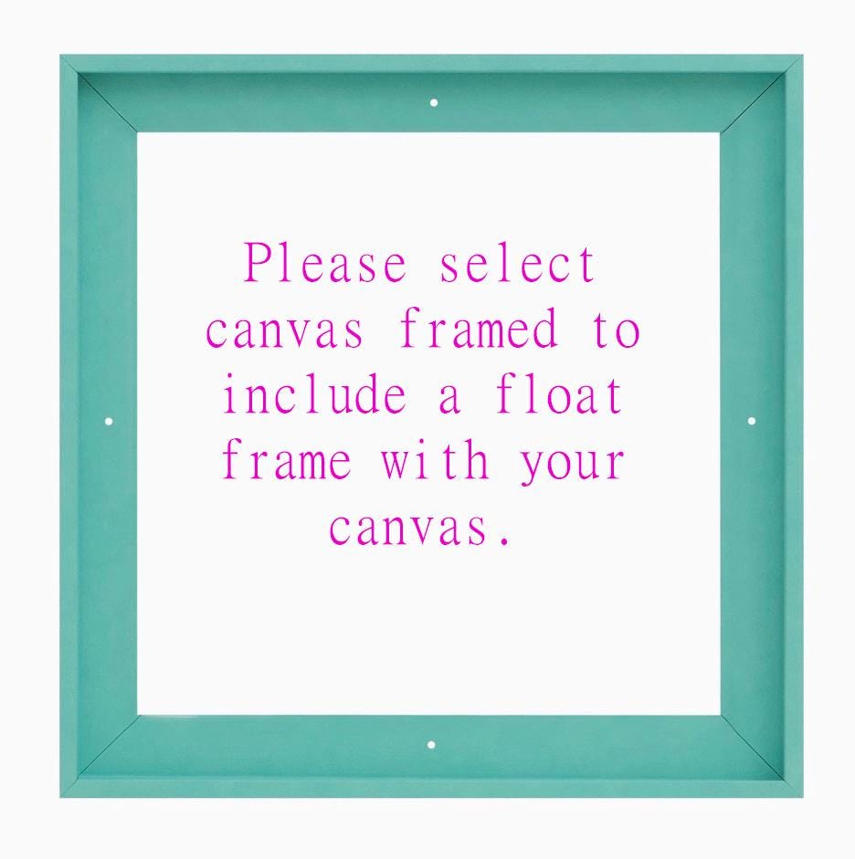 Gallery wrapped canvas prints are printed with 100% archival inks with a 12 color process for perfect vibrant colors. These prints include with hanging hardware installed and felt bumpers. Gallery wrapped canvas are 1.5” in width for a museum art feel. Canvas prints can be purchased with or without an aqua color float frame. The float frame is painted an aqua color to match your new canvas print and will arrive ready to hang on your wall. Please select the "canvas framed" option to include a frame.